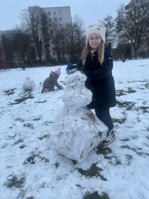 Die Kinder haben zahlreiche wundervolle Schneemänner und Schneefrauen gebaut von winzigklein zu riesengroß!